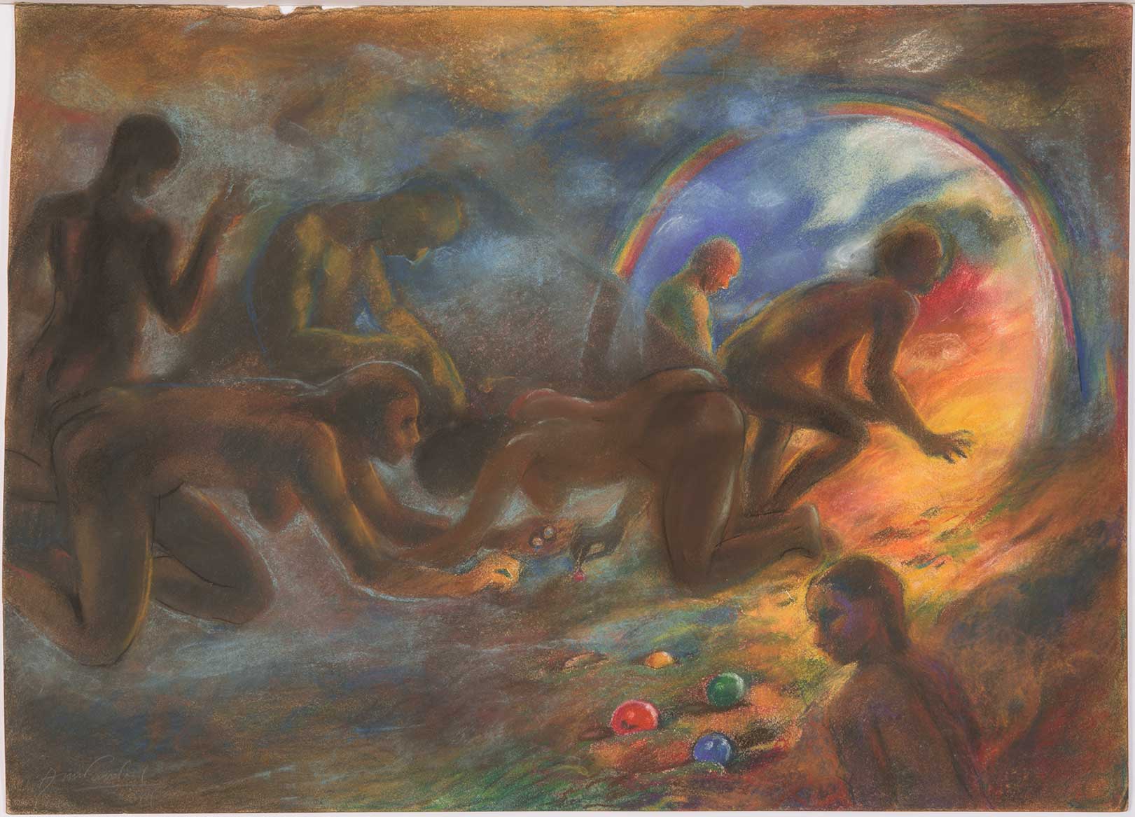 Her journey from ‘the plate to the palette’ has been a story both exemplary and singular. Her watercolours and mixed media works in their intimate scale reveal the joy of spontaneity and impulsive effusiveness. In her large-format oil paintings, she responds to the fluidity of space. Her eye and hand traverse the expanded visual field with brushwork that is tactile and palpable, by thinning oil for layering the surface with illusionistic pictorialism. Drawing continues to enchant her and remains the driving force behind her articulations.