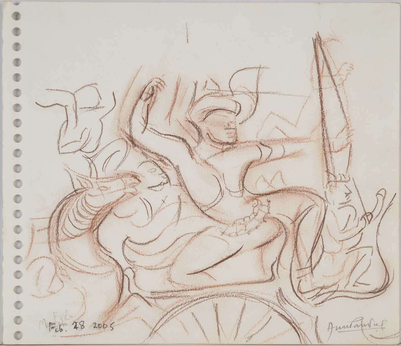 Anupam Sud was born in 1944 at Hoshiarpur, Punjab but spent a substantial part of her childhood in Shimla, Himachal Pradesh. By 1960, her family had migrated to Delhi where she pursued a Diploma in Painting from the College of Art (1962-67). She was the youngest member of Group 8, a printmakers’ collective started by Jagmohan Chopra (1935-2013). Between 1971 and 73, Sud joined the Slade School of Art, London, under the tutelage of Portuguese artist Bartholomew dos Santos to further her study in printmaking. For nearly three decades after her return from London, she taught at the Printmaking department of College of Art, New Delhi. Sud’s practice largely focuses on various intaglio processes and printmaking techniques composing themes focused on the human figure. Over time, her practice has evolved to include other mediums such as painting, charcoal, pastels and ink.