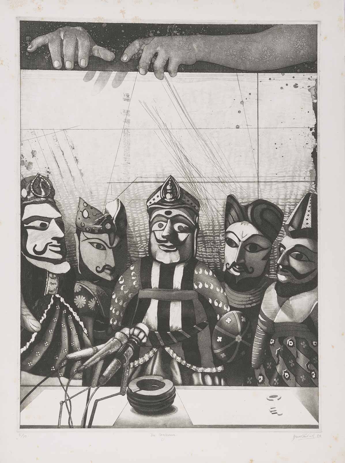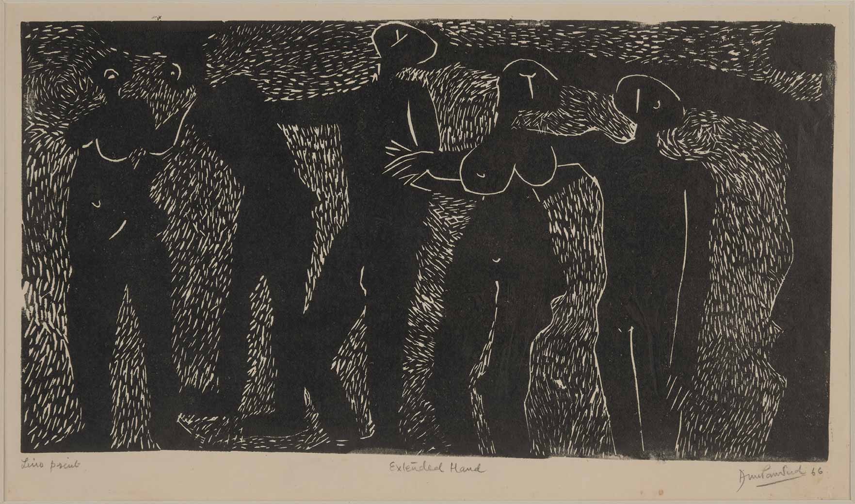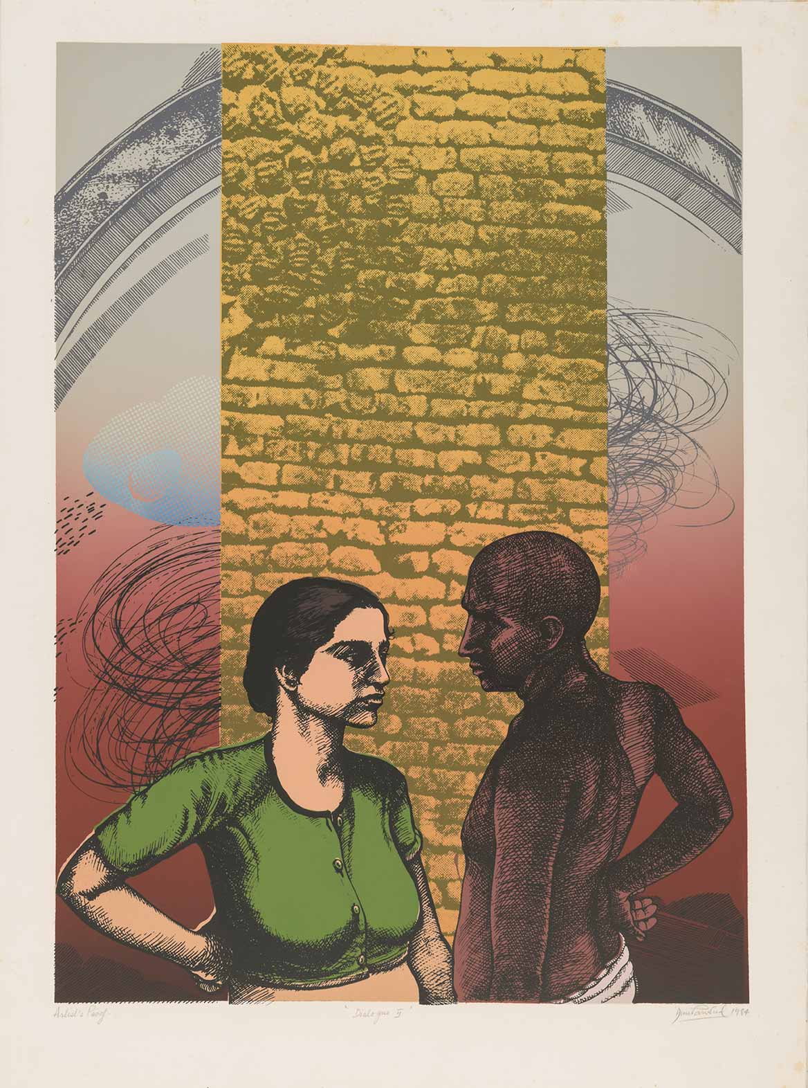 Anupam Sud was born in 1944 at Hoshiarpur, Punjab but spent a substantial part of her childhood in Shimla, Himachal Pradesh. By 1960, her family had migrated to Delhi where she pursued a Diploma in Painting from the College of Art (1962-67). She was the youngest member of Group 8, a printmakers’ collective started by Jagmohan Chopra (1935-2013). Between 1971 and 73, Sud joined the Slade School of Art, London, under the tutelage of Portuguese artist Bartholomew dos Santos to further her study in printmaking. For nearly three decades after her return from London, she taught at the Printmaking department of College of Art, New Delhi. Sud’s practice largely focuses on various intaglio processes and printmaking techniques composing themes focused on the human figure. Over time, her practice has evolved to include other mediums such as painting, charcoal, pastels and ink.