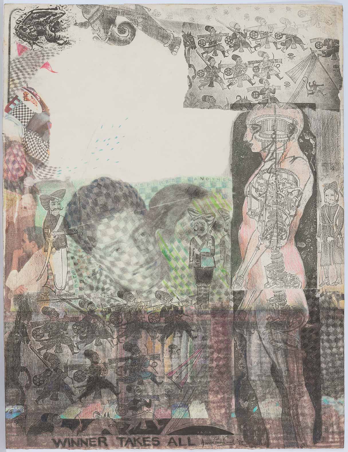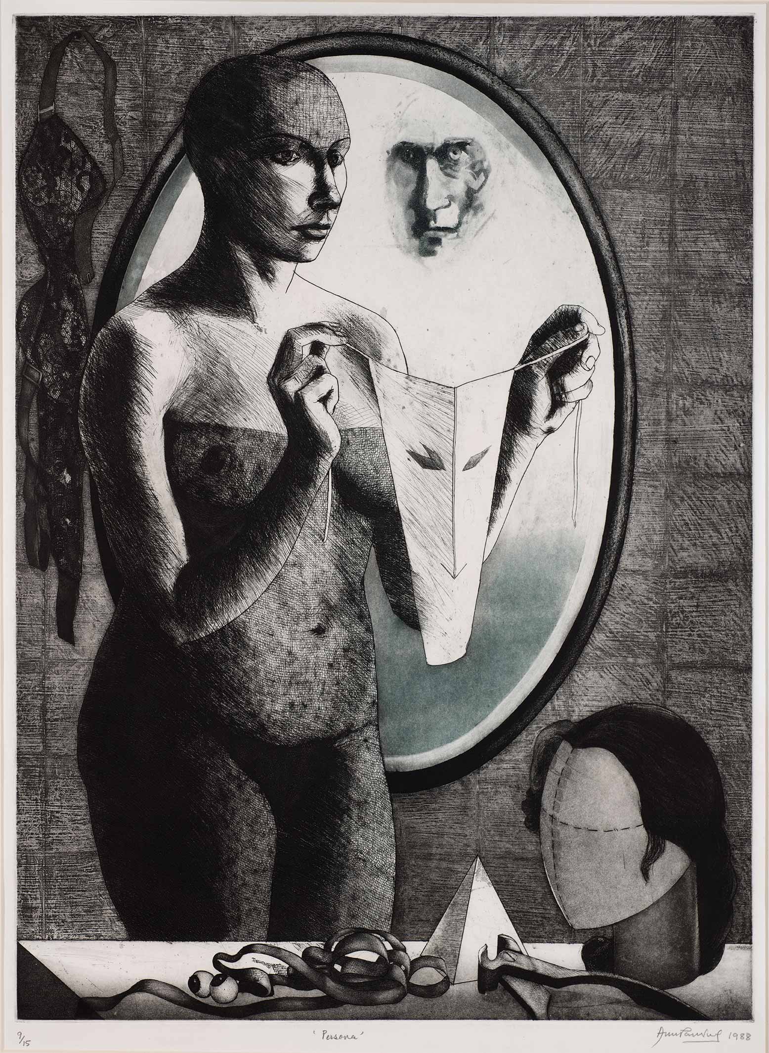 In her five decades of art practice, she participated in numerous group and solo shows across the globe including her first major solo exhibition - Graphics and Drawings: 1971-89 in Art Heritage, New Delhi; her first retrospective Transgression in Prints: Anupam Sud, Four Decades at Palette Art Gallery, New Delhi; and the major retrospective The Soul (Un)Gendered organised by Delhi Art Gallery, New York in collaboration with Kiran Nadar Museum of Art in 2019-20. Sud is the recipient of numerous awards and fellowships including the British Council Scholarship (1971), the President of India’s Gold Medal (1973), Sahitya Kala Parishad Award (1976, 1980, 1984, 1992, 1993), study and travelling fellowship in printmaking at the Centre for International Contemporary Art (CICA), New York granted by the Alkazi Foundation (1990), Charles Wallace Research Grant (1998) among others. Sud currently resides and practices in Delhi.