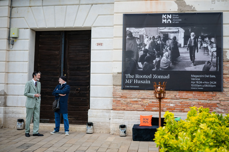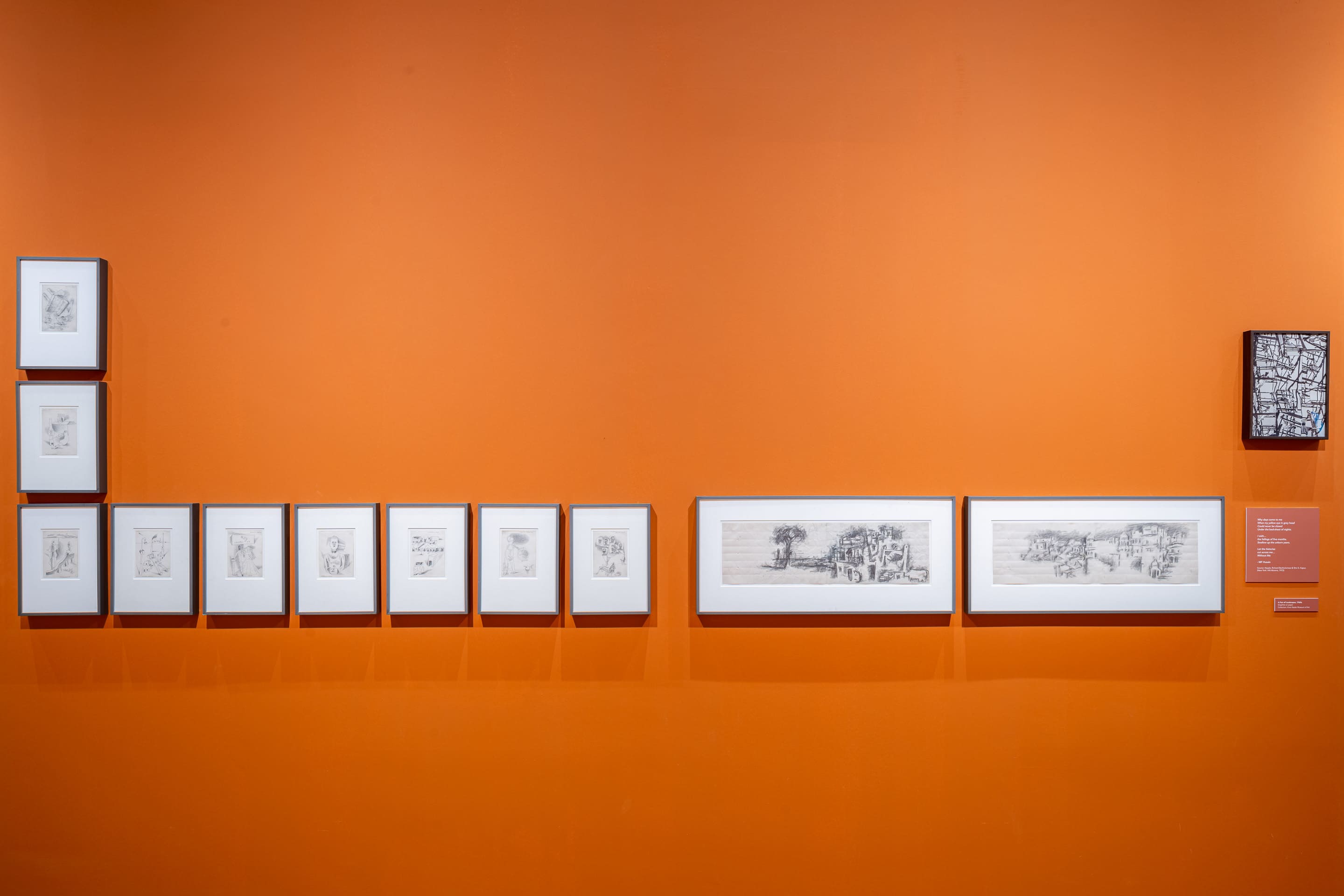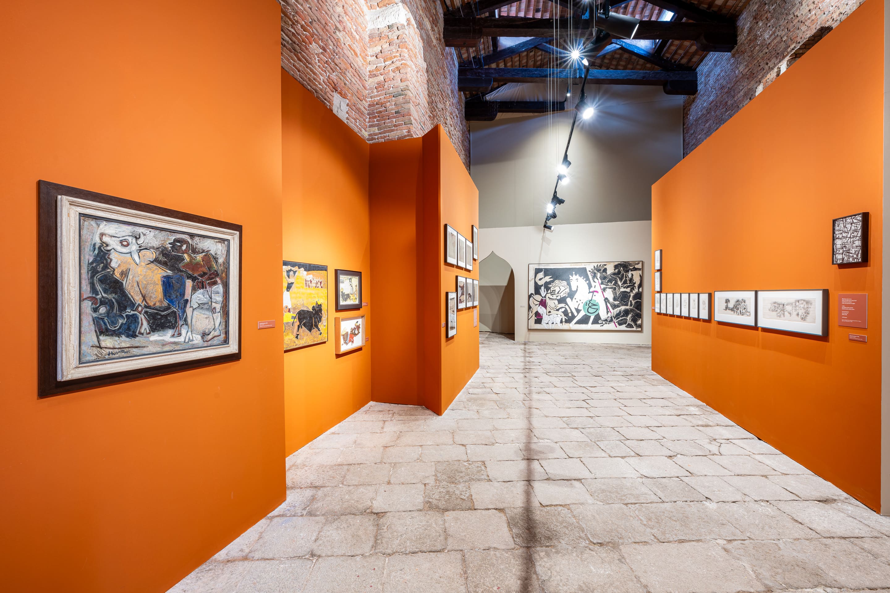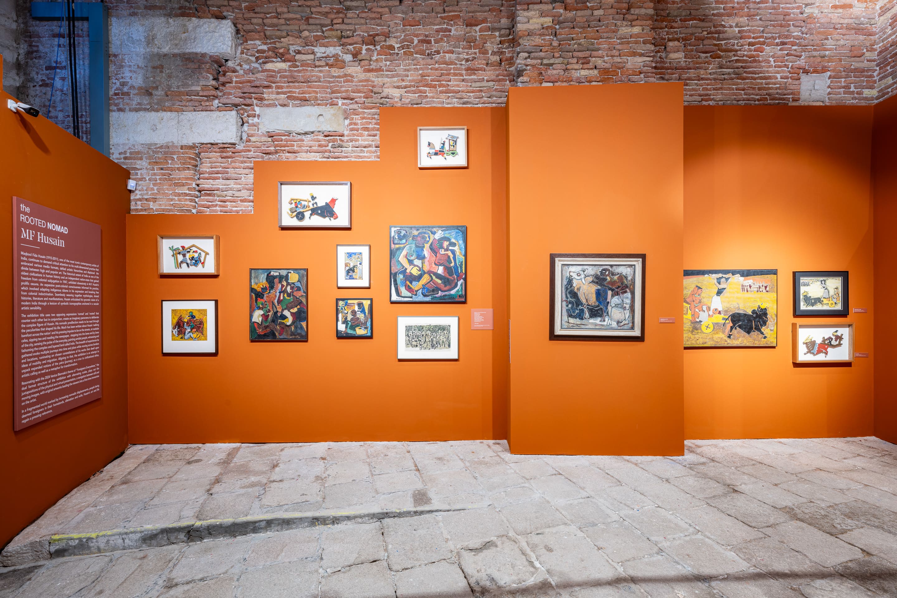 The exhibition title uses two opposing expressions ‘nomad’ and ‘rooted’ that counter each other but in conjunction, create an imaginary panorama to deliberate the complex figure of Husain. His nomadic predilection needs to be read through the peculiarities that shaped his life. Much has been written about Husain ‘walking barefoot across the nation’ and his pressing impulse to be on the streets, at roadside cafes, sipping tea and reading the newspaper, stepping into the lanes and by lanes of the city, sensing the pulse of the everyday, painting amidst people, witnessing and fathoming the complex and layered land called India. The breadth of experiences he gathered evoke multiple journeys into time and place while moving across borders and locations, ruminating on chosen constellations of his works that dwell upon ideas of mobility and migration. Aligning to that, the exhibition is an attempt to unpack expanded notions of the ‘yatra’(journey), as a crux to civilizational ethos, artistic calling as well as a metaphor for transformation.