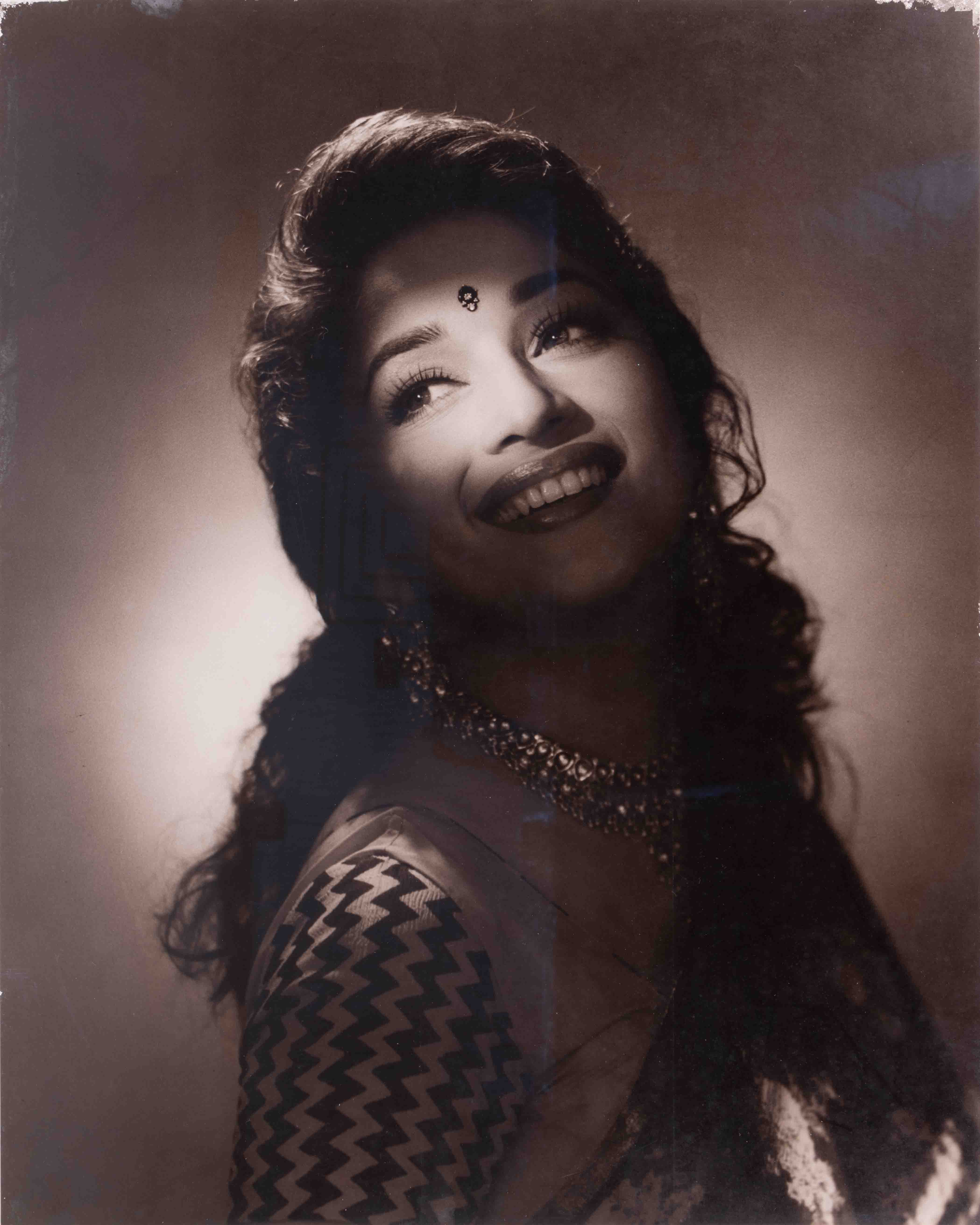 Musical melodies with evergreen lyrics that lingered, melodrama peppered with unforgettable dialogues, and the grandeur of a royal past or modern city serving to be the mise-en-scène of a romance: these were some of the major leitmotifs that the post-Independence Bombay cinema was known for. We revisit today the ‘golden era’ of the Bombay film industry and the faces behind them with a sense of nostalgia as well as fascination, since the world that they evoke is both timeless as well as transient. These figures from the past are like those distant and disappeared heavenly bodies which now exist only in their silver shadows, cast on the retinas of earthly beings. Presenting portrait-photographs of Bombay cinestars by the eminent JH Thakker, this exhibition offers a snippet of a particular chapter from the long history of celluloid in the subcontinent: the crucial decades roughly between 1947 and 1968. This interregnum coincides with what has widely been registered as the “Golden Age of Hindi Cinema”, when the post-Partition India became the second largest film-producing country in the world after Hollywood, partly due to the influx of migrants to Bombay (Mumbai) specifically from Lahore film industry in Pakistan. Thakker, also a Partition refugee, set up his “India Photo Studio” at Dadar in 1948, a spacious art-deco apartment which was to be graced by a constellation of upcoming and established actors of the Bombay cinema such as Dilip Kumar, Meena Kumari, Madhubala, Bharat Bhushan, Nargis, Raj Kapoor, Dev Anand and Nutan. A master of composition in black and white and sepia tones, he created magic developing his silver gelatin prints. Thakker quickly understood the exceptional role assigned to him—that of shining the glittering light of these stars on the earth, while masquerading as any other crew member on the movie set. Thakker not only utilised his technical acumen and astute sense of the “chiaroscuro” (the light and dark gradation of tones) but deployed imagination to formalise and posture glamorous subjects as the icons of popular romance. Within these “temples of desire” exquisitely perfumed by timeless music, song and dance compositions, Thakker’s practice can be contextualised as that of an idol-maker. The newly Independent India had a vexed relationship with the burgeoning film industry, despite the role it would play in cementing nationalist values and the creation of popular stars across cultural differences. By the year 1968, Thakker, as Bombay cinema’s favourite photographer, had distanced himself from the world of stardom. He was disillusioned by the sharp changes in production process wherein the Technicolour reigned supreme and actors were no longer required to spend long hours at the photo studio for promotional stills. Instead, Thakker now preferred to use his vast repertoire of photographic talent to image the common people with the same interest. In 2003, the expert lensman joined his beloved stars in the night sky, leaving behind countless photographs and memories of an era of filmic time.