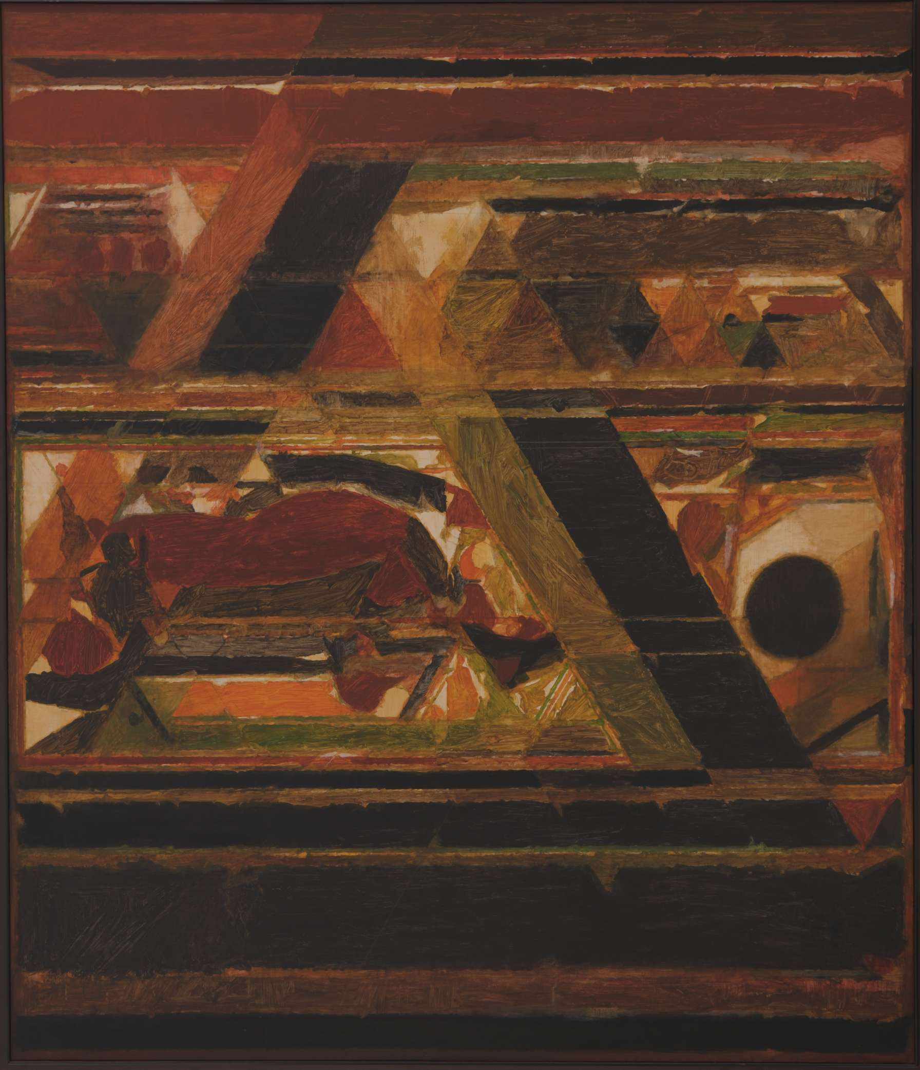 K Ramanujam was born in 1941, Triplicane, Chennai (Madras), into an orthodox Iyengar family. In spite of his physical and learning disabilities, Ramanujam was recognized as a promising art student at the Government College of Art and Craft, Chennai. Encouraged by his teacher KCS Paniker, he joined the Cholamandal Artists’ Village, Chennai. Fascinated with Ramanujam’s works, the Sri Lankan architect Geoffrey Bawa commissioned the artist to create three large murals for the Hotel Connemara in Chennai. The artist received the National Scholarship from the Ministry of Education in 1962 and participated in the Commonwealth Arts Festival, London in 1965. He took part in the National Exhibitions of Art organised by the Lalit Kala Akademi and in numerous other group shows in Copenhagen, Oslo, Vienna, Delhi, Chennai and Mumbai. The artist passed away in 1973.