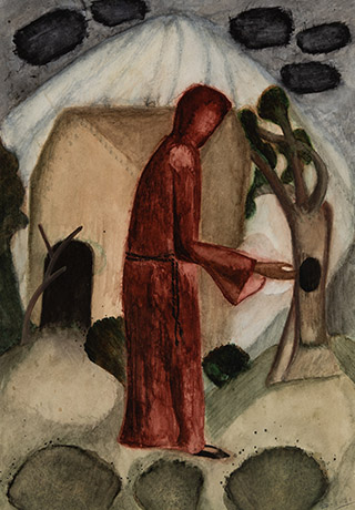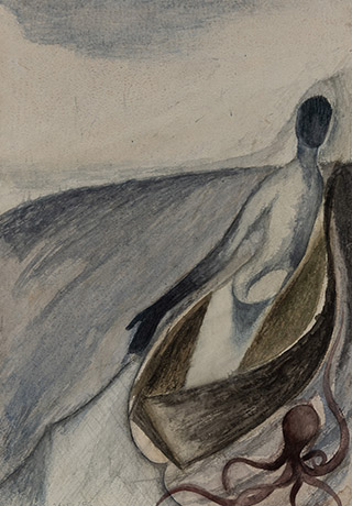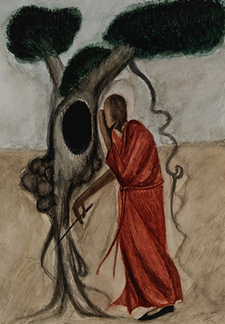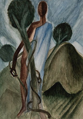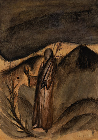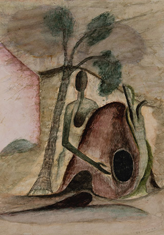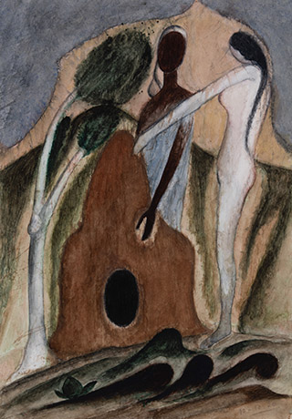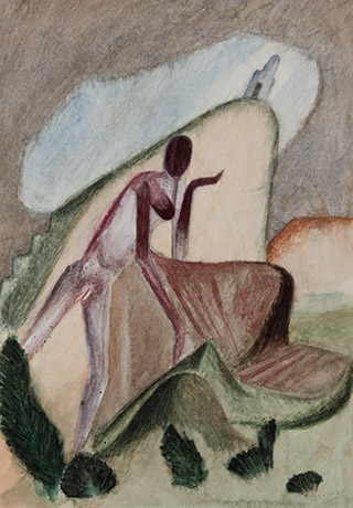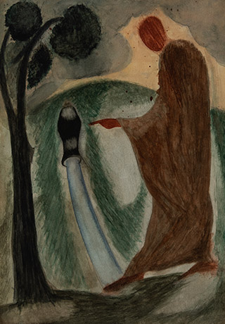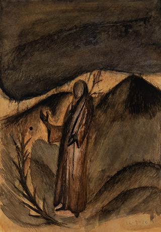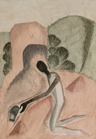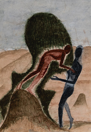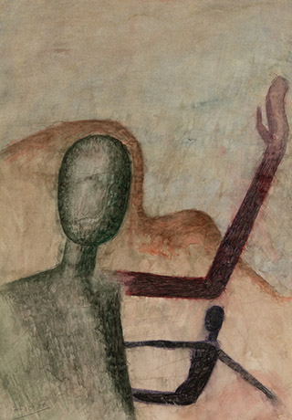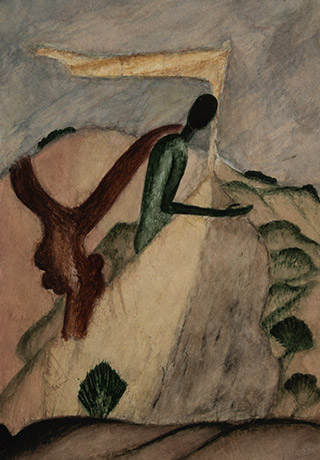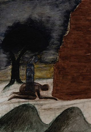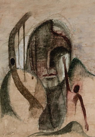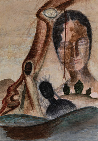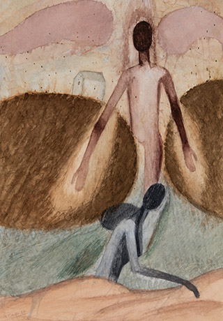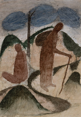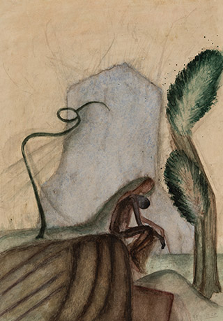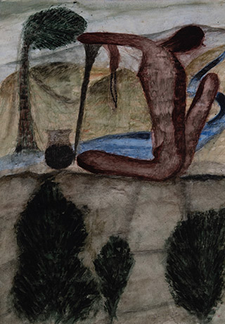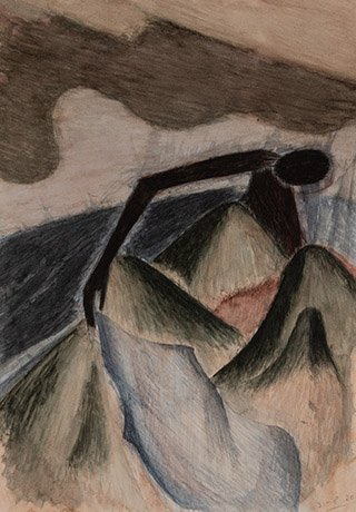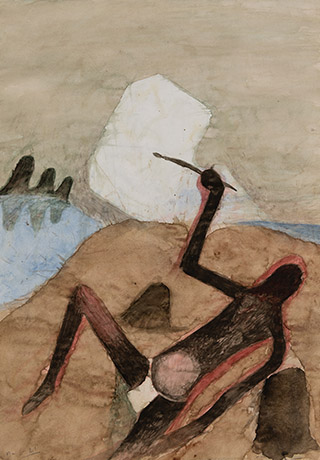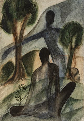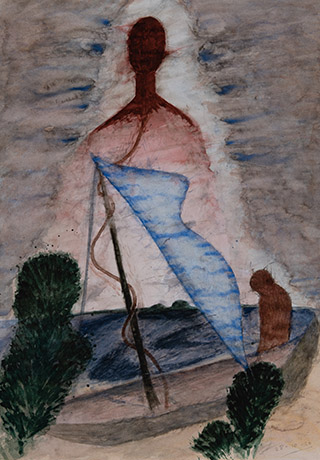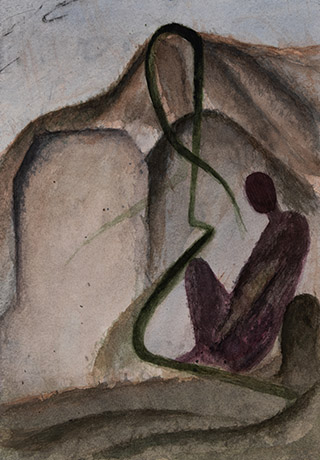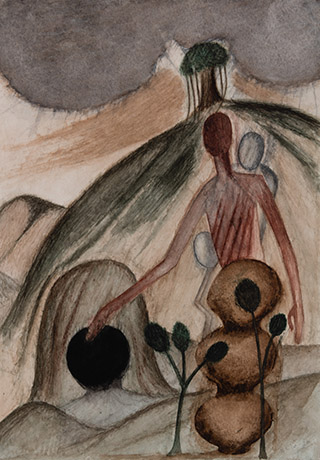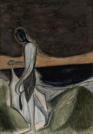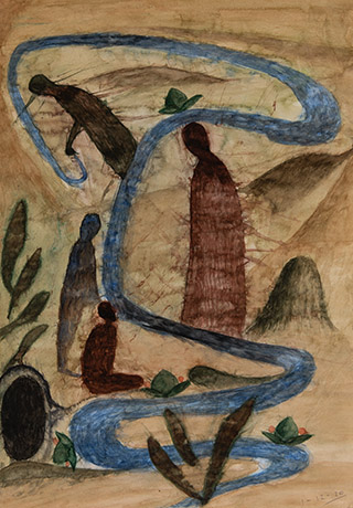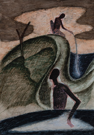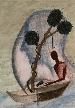 Dodiya returns to primal, basic elements and forms, immersing himself in the creative play between innocence and imagination, addressing nature and its cathartic forces, and perhaps too the solitary figure of an artist’s long-overdue conversation with himself. Confessional at times, evoking Christ’s words in the Garden of Gethsemane or other mythologies associated with the miraculous acts of divine beings, the human figure is caught in moments of self-absorption, retreat and freedom, filled with awe at the infinite stretching of the universe in time and space. In the elevating forms, leisurely moments and acts of being borne on the tide of the unknown, Dodiya reiterates the irrepressible desire for life and perhaps a new dawning of its purpose.