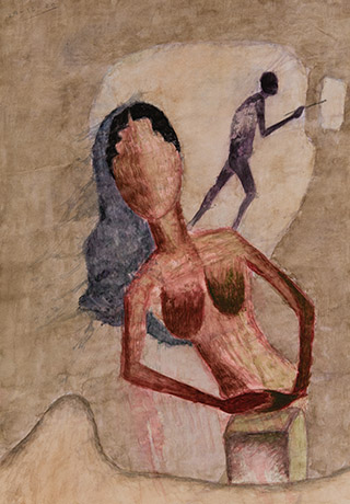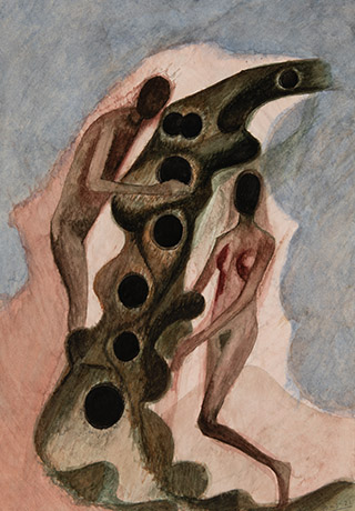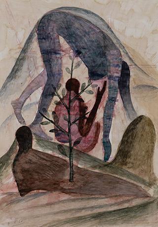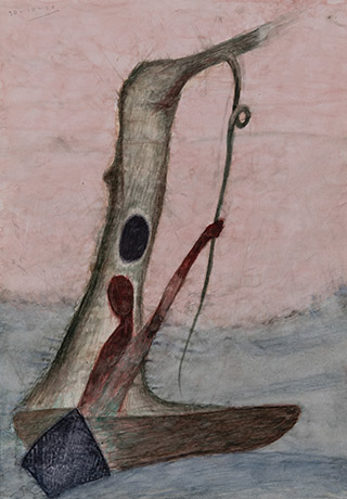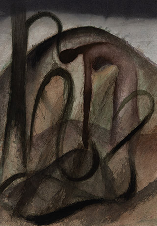 Having mastered several artistic mediums and techniques, Dodiya here expresses a loosening of the mind and brush, oscillating between a precise stain and an amorphous mass, embarking on a mysterious adventure, contorting and abstracting nature-elements and the human body. All of these acts thereby suspend the conscious need for perfection and intention.
