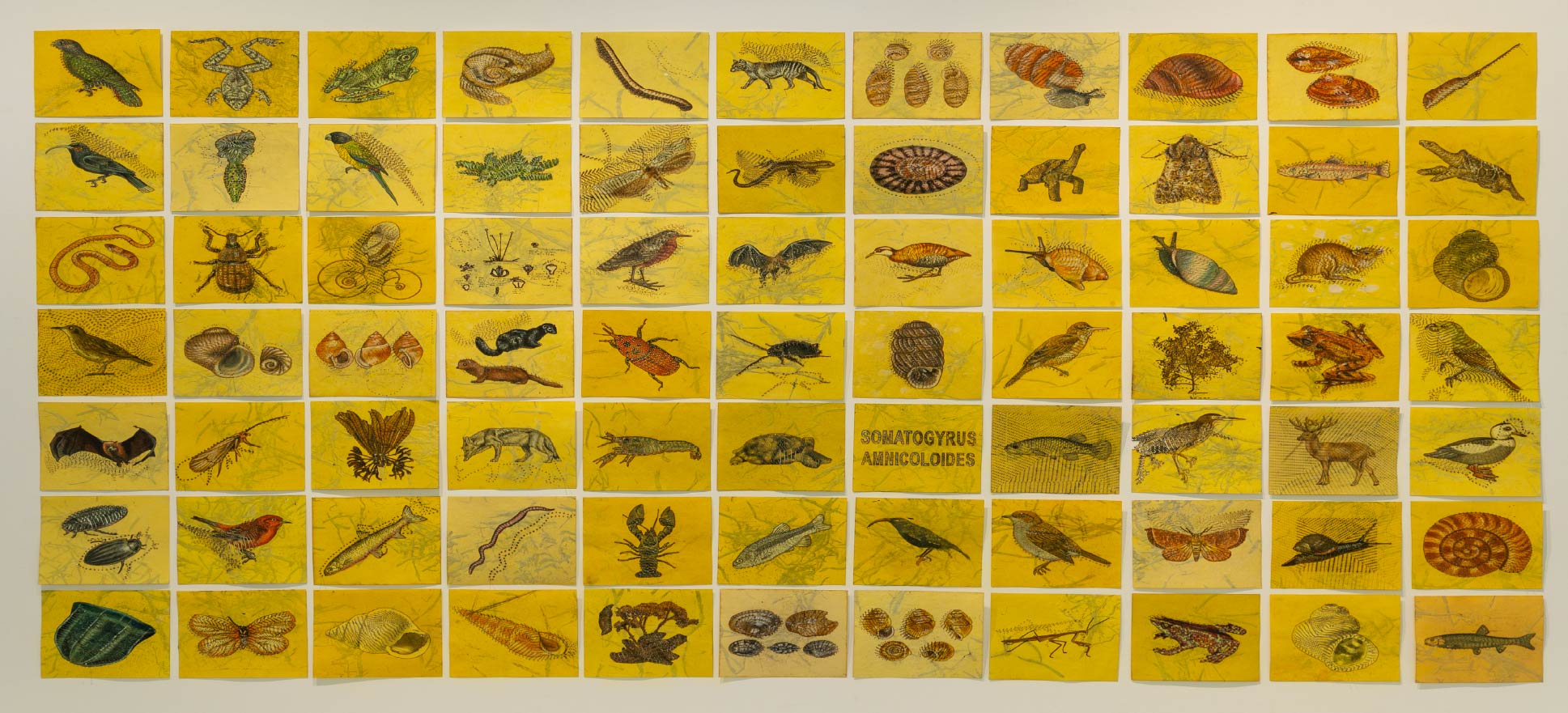 The installation references more than 900 endangered animal, fungal, and plant species drawn from the International Union for Conservation of Nature’s Red List of Threatened Species. Positioned as both record and witness, the work confronts extinction not as an abstract future, but as an ongoing condition.