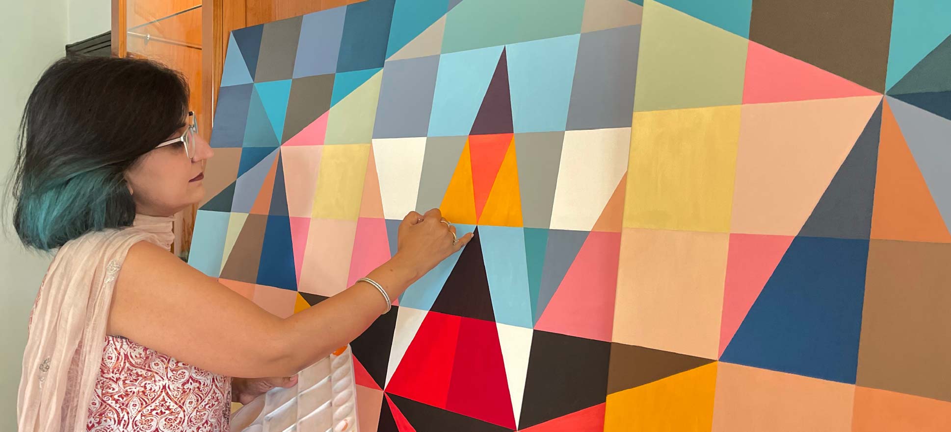 Neerja Peters is a New Delhi–based artist whose practice centres on geometric abstraction as a meditative exploration of light, colour, and form. Originally trained as a physician, she transitioned fully to her artistic practice in 2019. Her work has been exhibited internationally, including in the United States, Australia, and India, and she has participated in exhibitions and biennales across Europe, Asia, and the Americas. Her works are held in institutional collections including the New England Regional Art Museum and the Bowdoin College Museum of Art.