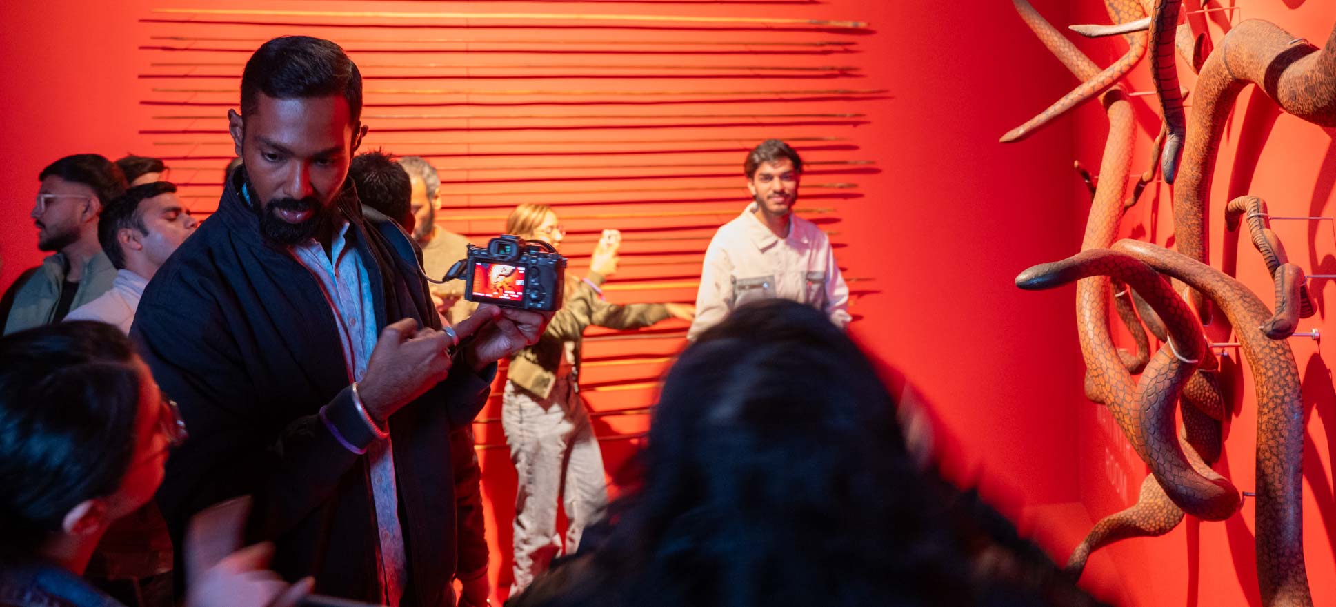 Conceptualised and facilitated by Srivatsan Sankaran, the session encourages participants to engage with the artworks and gallery environment through photographic observation. As they move through the exhibition, participants reflect on how movement, body language, and silent expression can be translated into visual narratives, drawing parallels with sign language and Deaf visual culture.